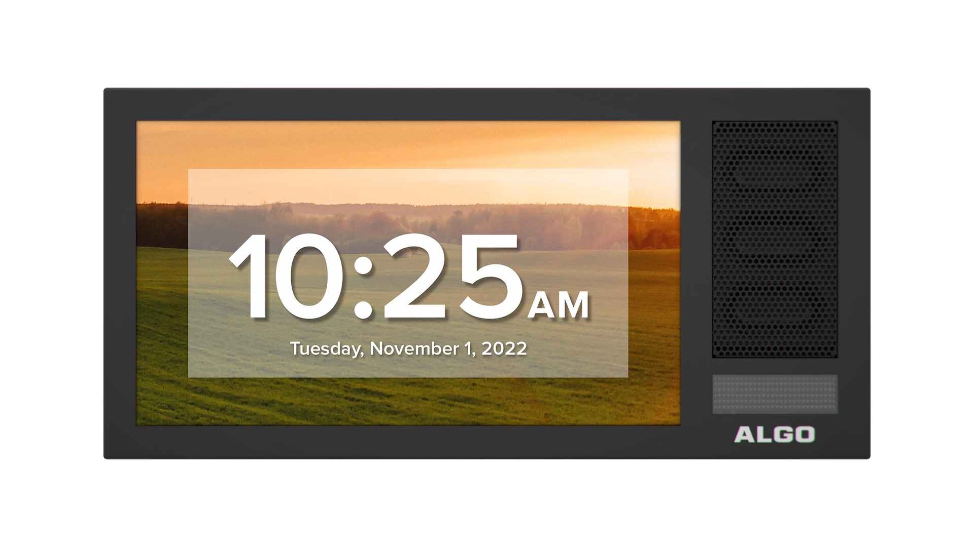 The primary element of the 8410 is the LCD display. With unlimited visual possibilities, the screen can produce scrolling text, flashing announcements, full-color images, or key data points, such as dates and times. Combined with LED backlighting and wide-angle viewing, the visual display can be seen from anywhere in a room or along a hallway. It can be customized to complement an audio announcement or to bring communication to an audio-less environment.