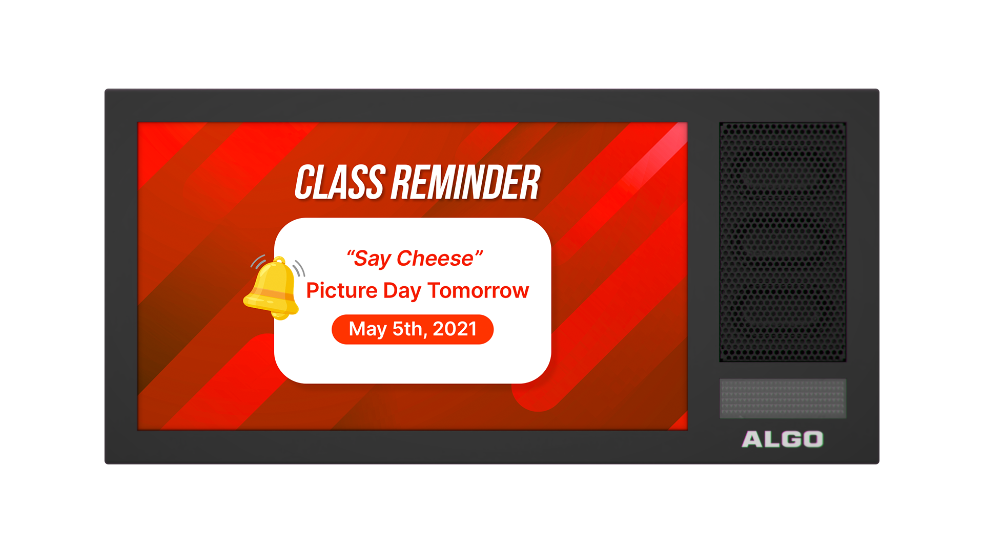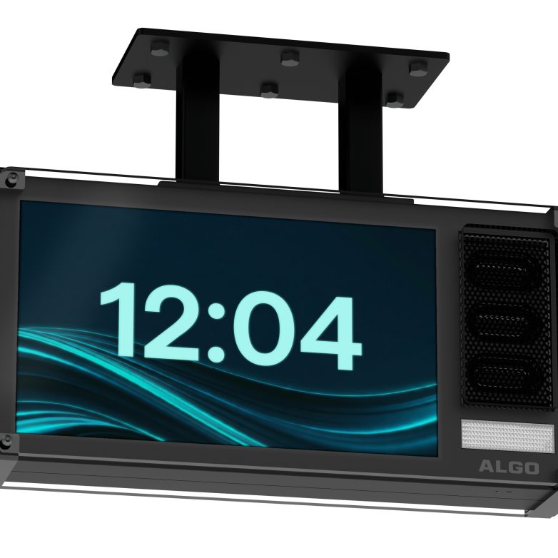 Algoโ€™s 8420 IP Dual-Sided Visual Display Speaker is a dual-sided, SIP-compliant notification device that comprises three core components – 15.6″ LCD screens, high-intelligibility speakers, and high-visibility LED flashers – to create highly flexible and effective visual and audible communication.