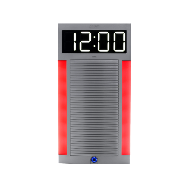 The Algo 8401 IP Single-Sided Clock is a high-visibility, NTP-capable, PoE clock that complements your Algo deployments. These clocks are configurable via a web interface and compatible with the 8300 or ADMP allowing you to monitor and manage them remotely.