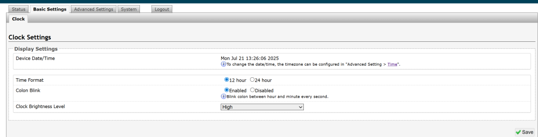 The 8402 is easily configured through a browser using the deviceโs IP address. Time zone, display format, and brightness settings can be adjusted in minutes. Provisioning tools allow settings to be rolled out across networks efficiently.