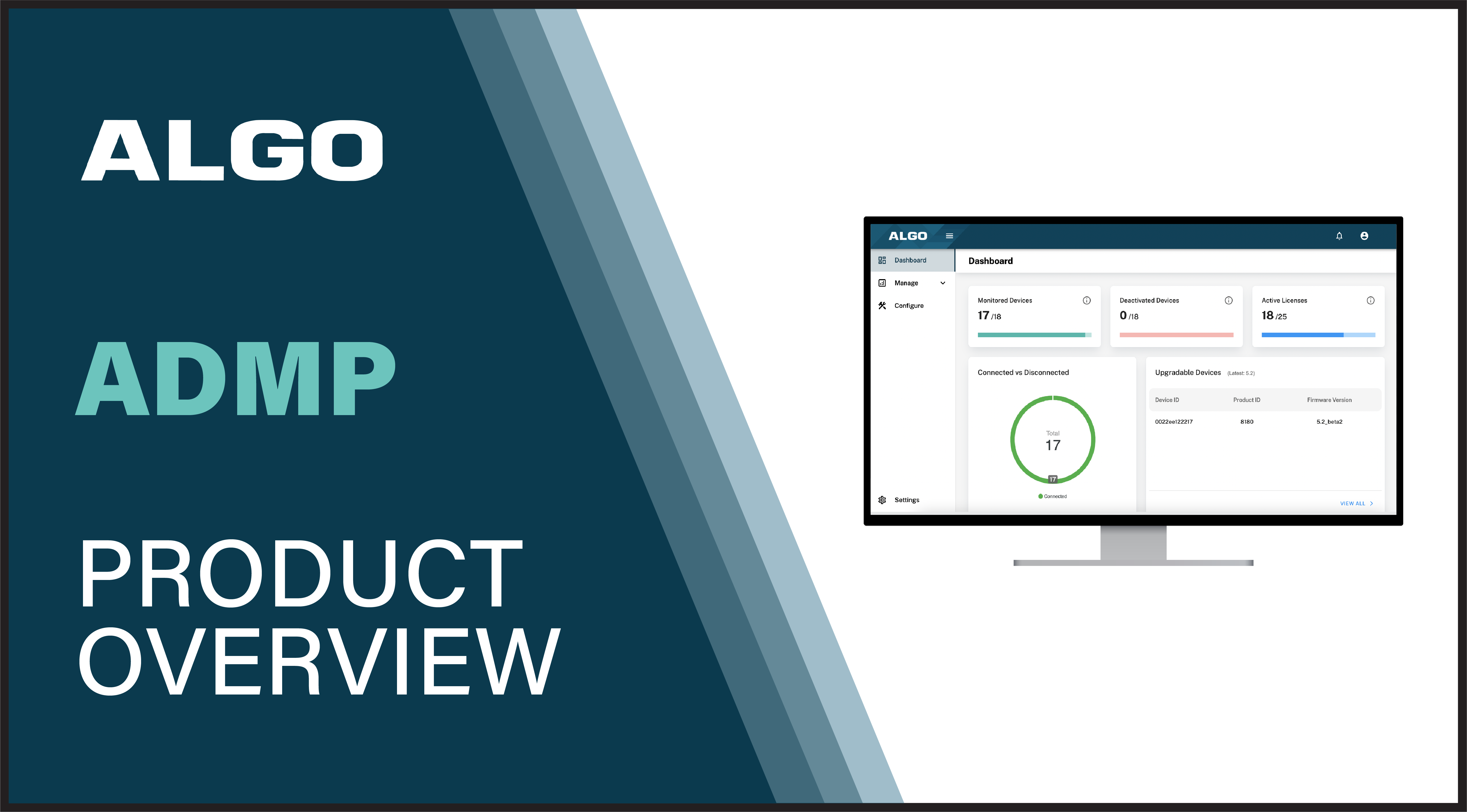 • Use the common dashboard to see all Algo devices deployed in a simple summary of Algo ecosystem