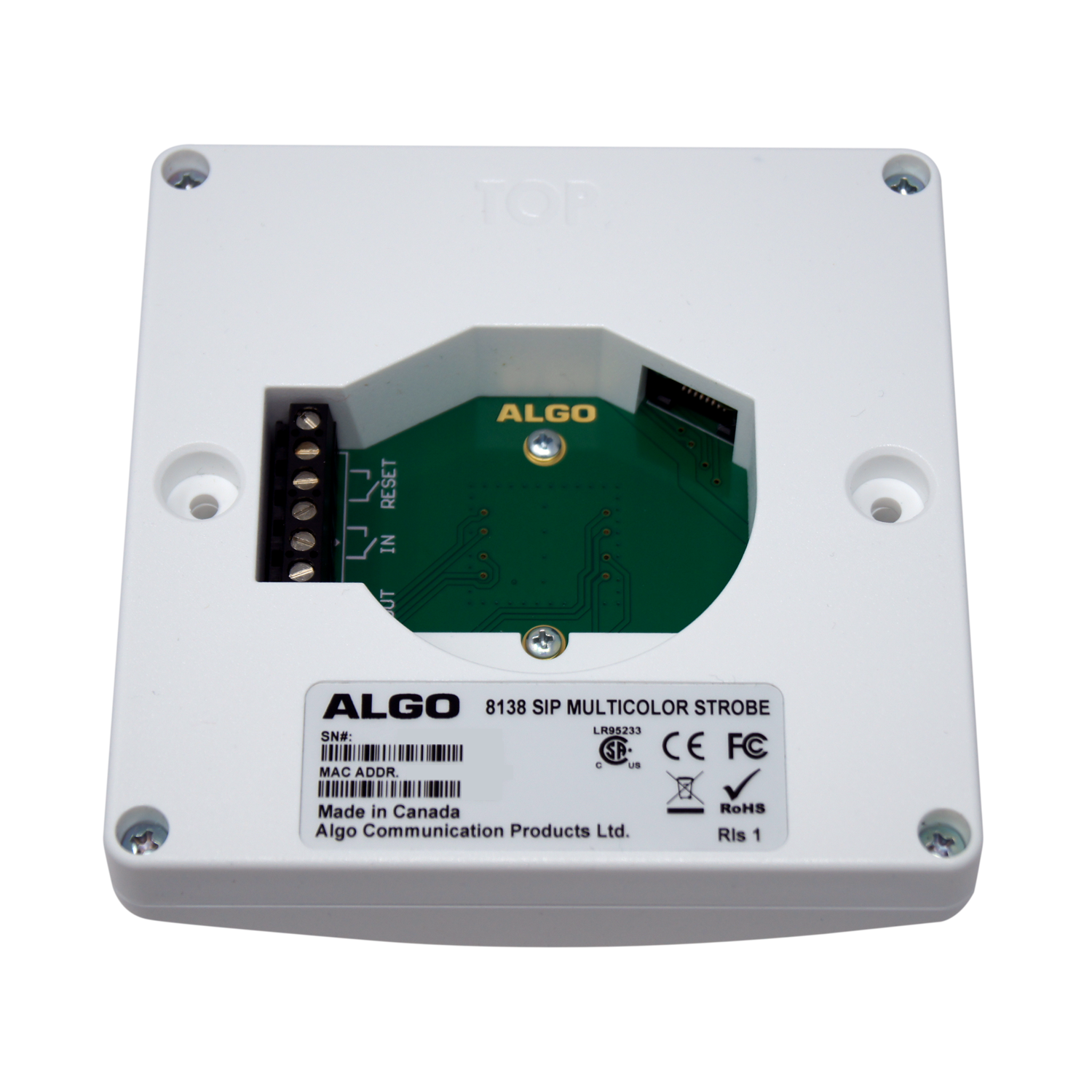The 8138 IP Color Visual Alerter is UL/CSA, FCC and CE certified.