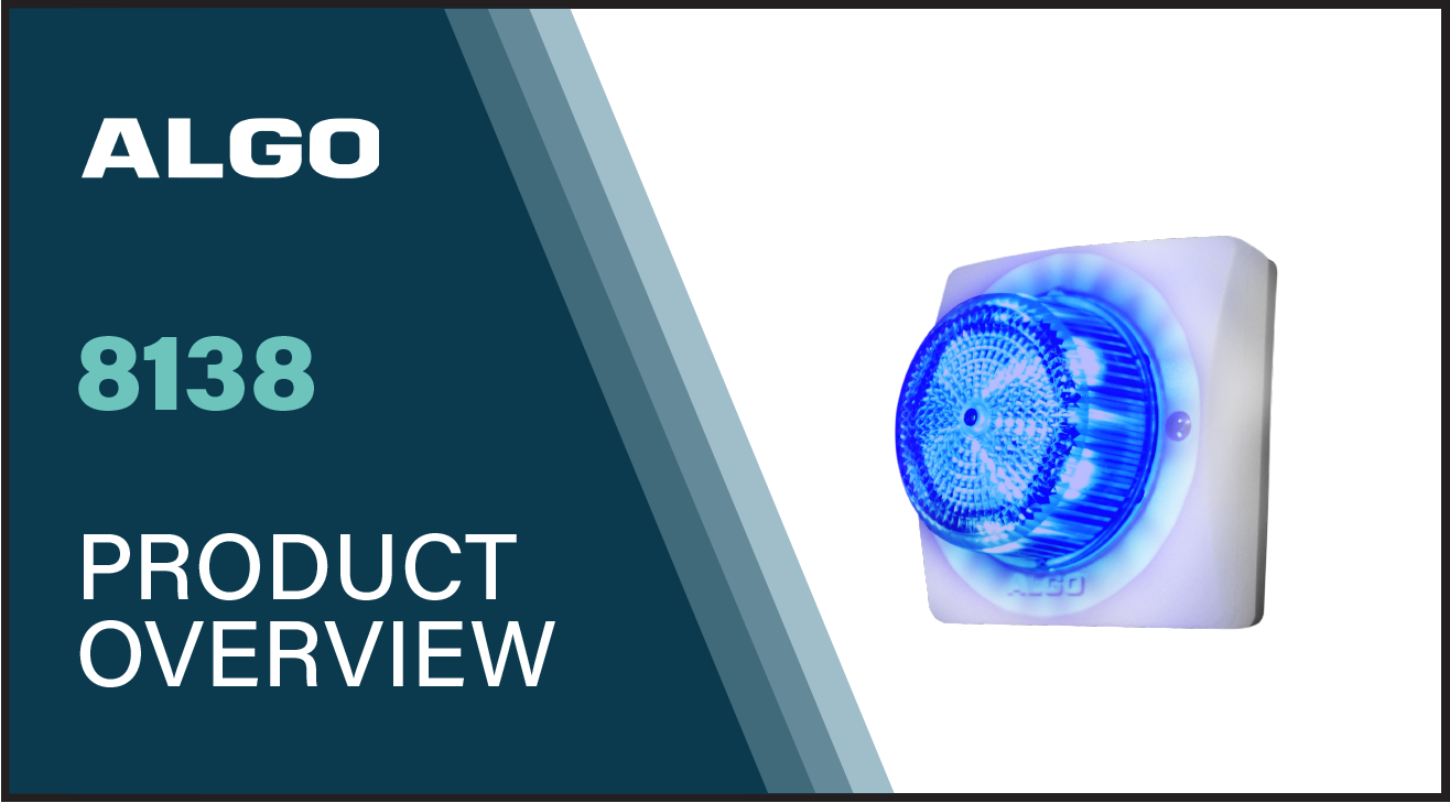 The 8138 IP Visual Alerters is a four color LED including amber, blue, green and red. The alerterโ€™s color options are designed to enhance notification and alerting of telephone, safety, security and emergency events. Typically the 8138 is deployed with Algo IP speakers using multicast, to design a notification system that aligns a visual alert color with the speakerโ€™s broadcast for an alert tone / announcement. For example, Amber โ€“ Shelter, Blue โ€“ Medical, Green โ€“ All Clear, Red โ€“ Lockdown.