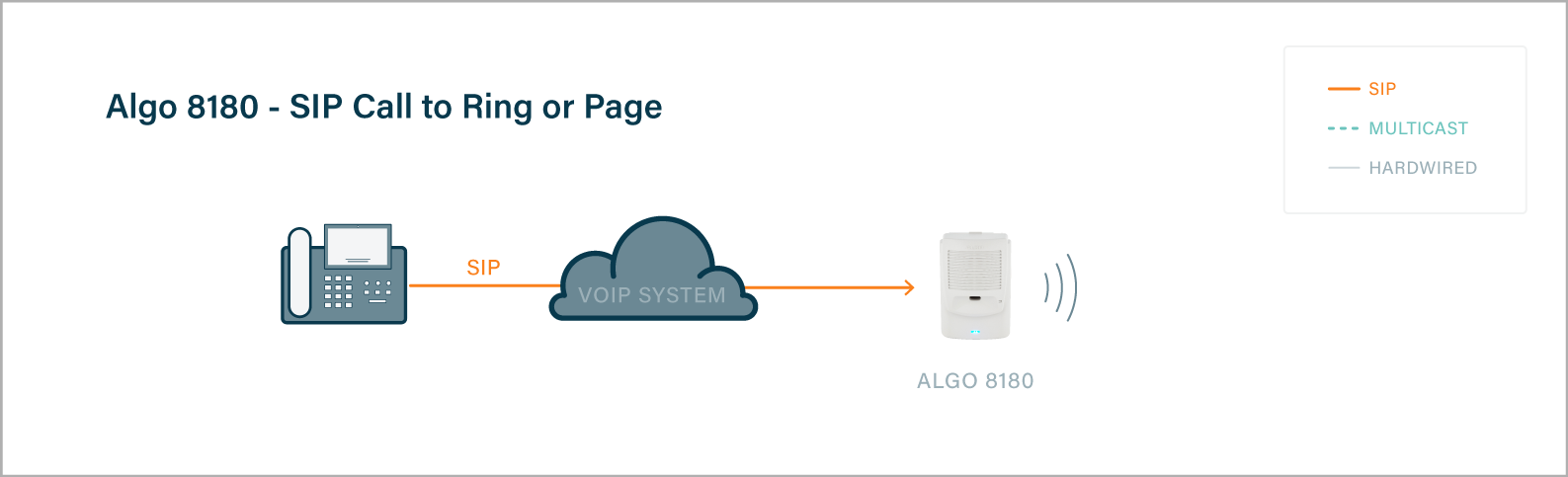A single registered SIP Audio Alerter can be configured to multicast to any number and mix of Algo IP speakers, strobe lights, paging adapters and multicast supported IP telephones.